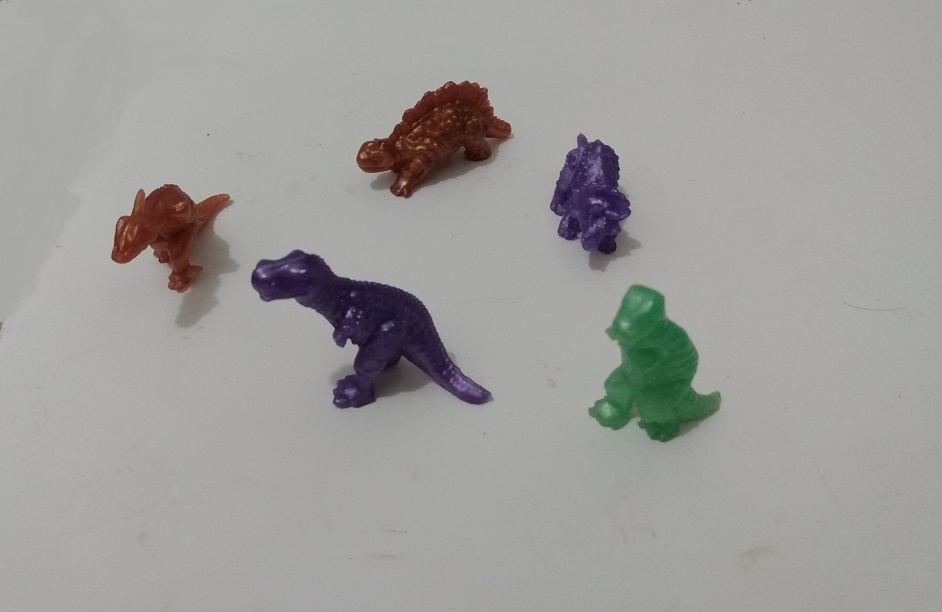 Here are some tiny semi translucent dinoaur figures. I don't know anything about them.
